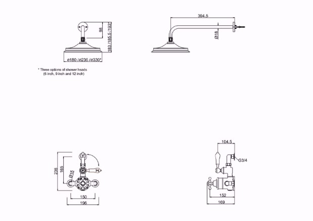 Burlington Avon Thermostatic Exposed Shower Valve Single Outlet with Fixed Shower Arm and 6 inch Shower Head