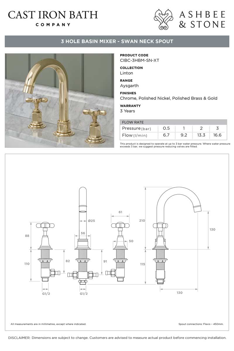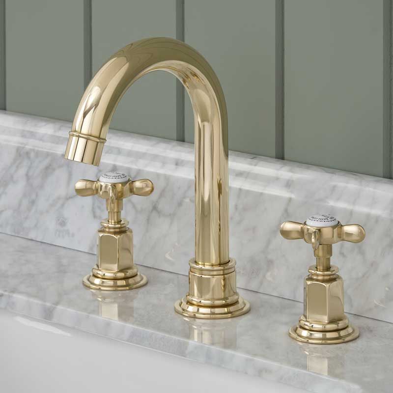 Aysgarth 3 Hole Basin Mixer - Swan Neck Spout - Crosshead