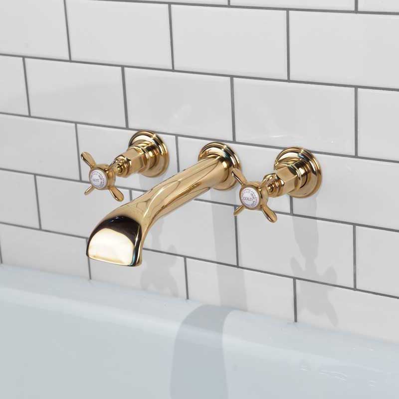 Aysgarth - 3-Hole Bath Filler - Wall Mounted - X-Top - Brass