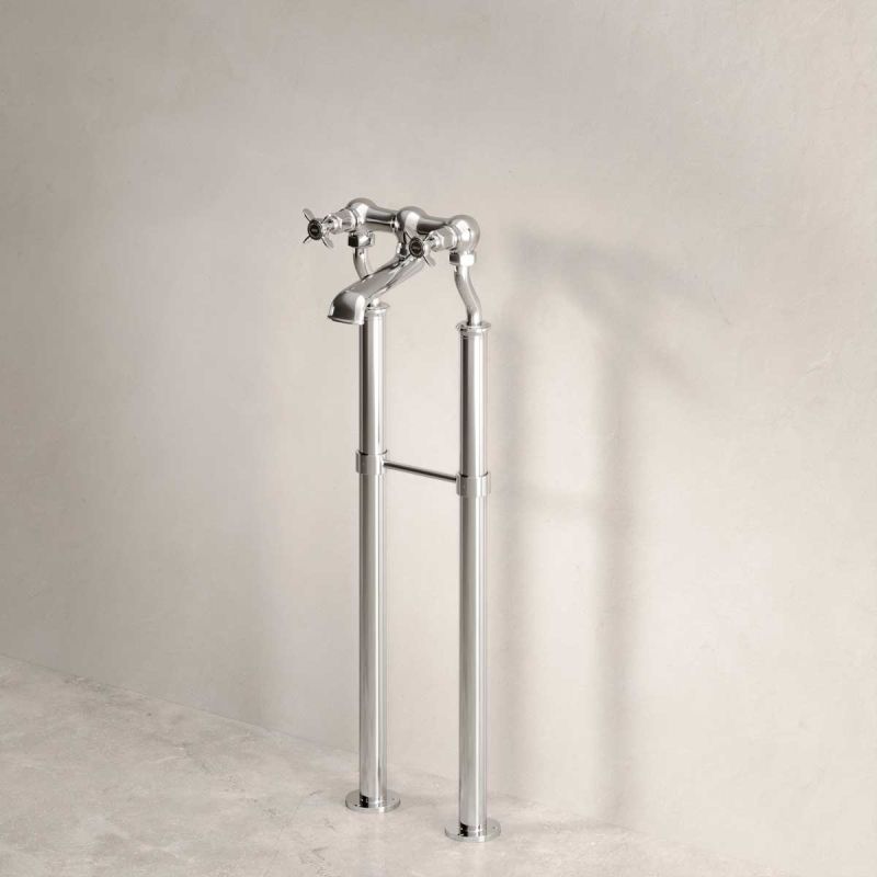 Our own, exclusively designed, freestanding bath filler tap on standpipes. The crosshead taps have German engineered ceramic cartridges with hot and cold indicators. The standpipes are 620mm in length and cannot be cut down.