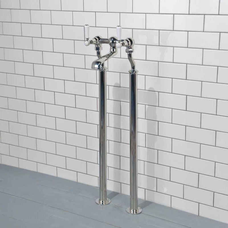 Our own, exclusively designed, freestanding bath filler tap on standpipes. The ceramic lever taps have German engineered ceramic cartridges with hot and cold indicators. The standpipes are 725mm in length which cannot be cut down and come with a support brace.