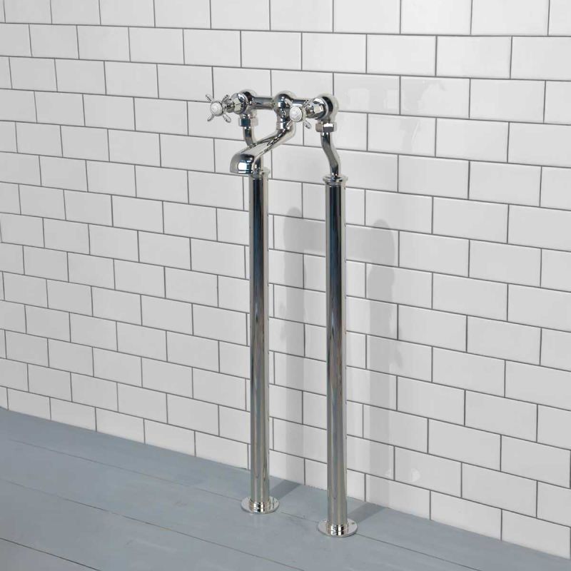 Our own, exclusively designed, freestanding bath filler tap on standpipes. The crosshead taps have German engineered ceramic cartridges with hot and cold indicators. The standpipes are 725mm in length which cannot be cut down and come with a support brace.