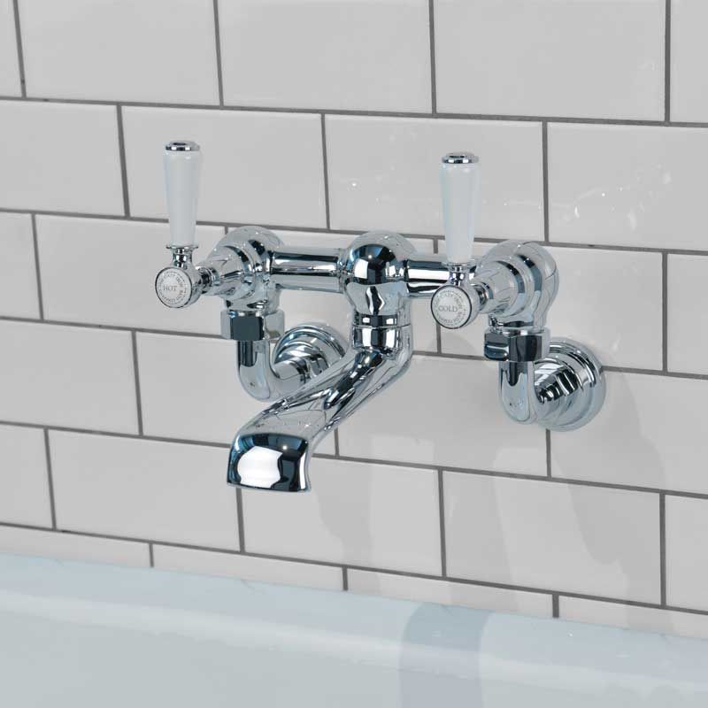 Linton Wall Mounted 2 Hole Bath Filler - White Lever - Chrome