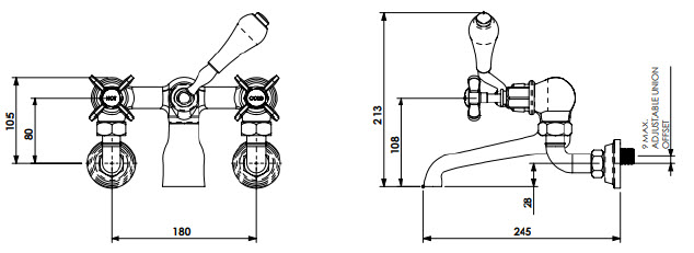 Our own, exclusive design, bath filler tap is shaped in traditional period style. The cross head taps have German engineered ceramic cartridges with hot and cold indicators.