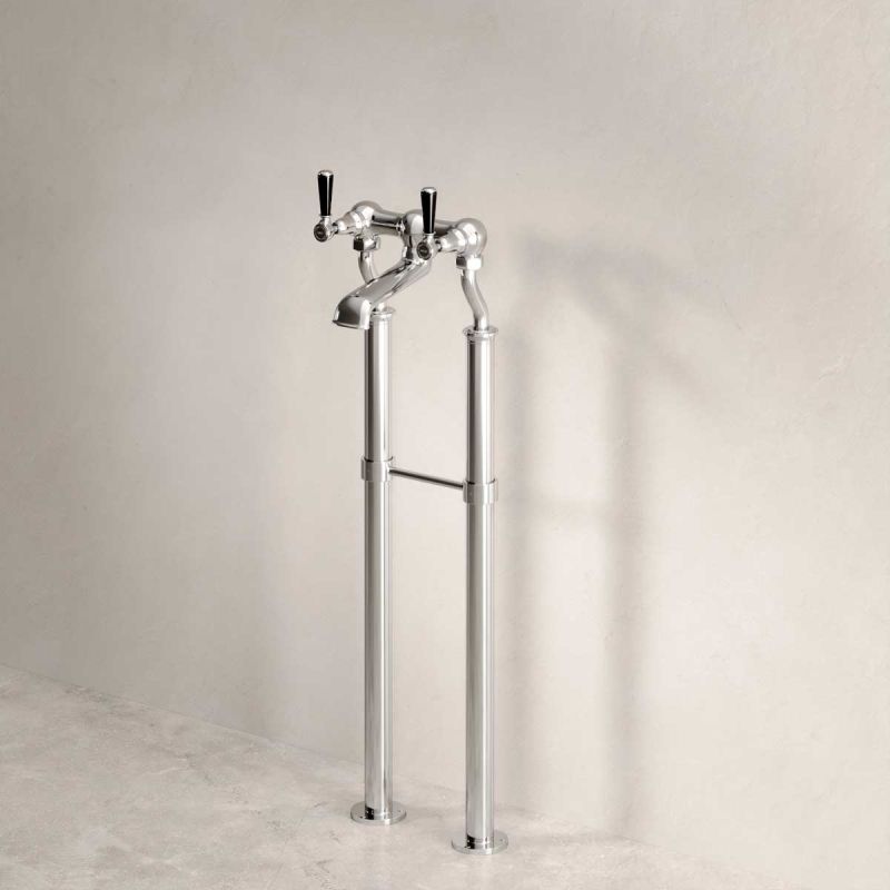 Linton Floor Mounted 2 Hole Bath Filler with 620mm Standpipes - Black Lever - Chrome
