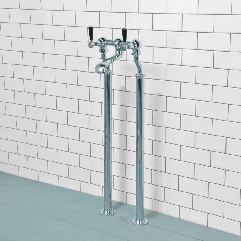 Linton Floor Mounted 2 Hole Bath Filler with 725mm Standpipes - Black Lever - Chrome