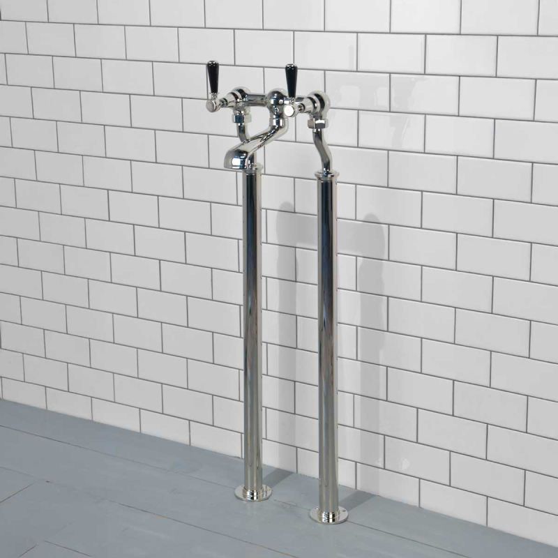 Linton Bath Filler Tap with 725mm Standpipes Black Lever Polished Nickel 3/4BSP (For Baths Without Tap Holes Only)