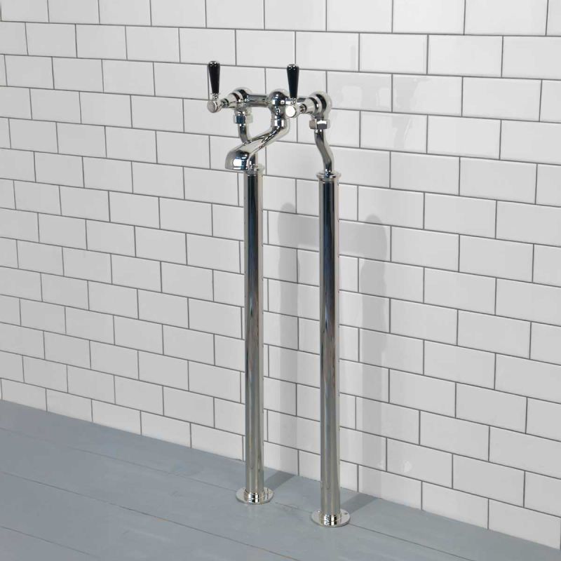 Our own, exclusively designed, freestanding bath filler tap on standpipes. The ceramic lever taps have German engineered ceramic cartridges with hot and cold indicators. The standpipes are 725mm in length and can be easily cut down if a lower height is required.