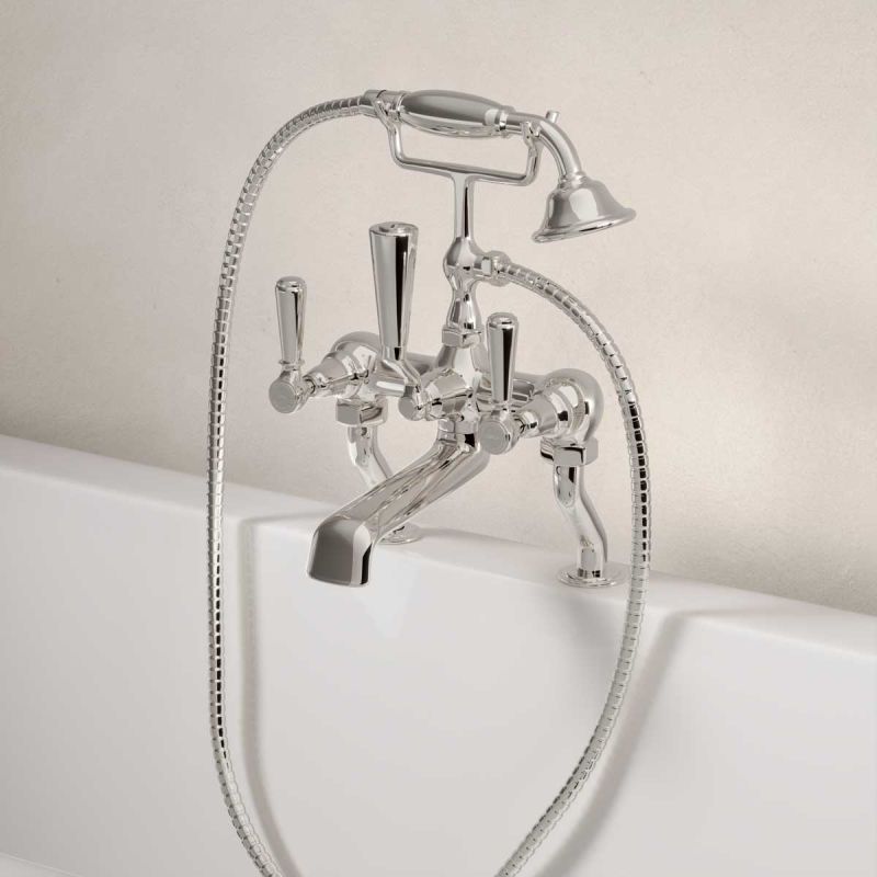 Our own, exclusive design, bath-shower mixer tap is shaped in traditional period style. The Metal Lever taps have German engineered ceramic cartridges with hot and cold indicators. And the shower handle is made from coordinating ceramic.