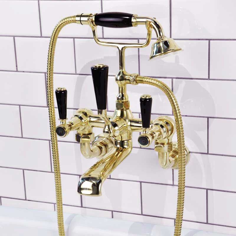 Linton Bath Shower Mixer Wall Mounted Black Lever Timeless Brass 3/4BSP