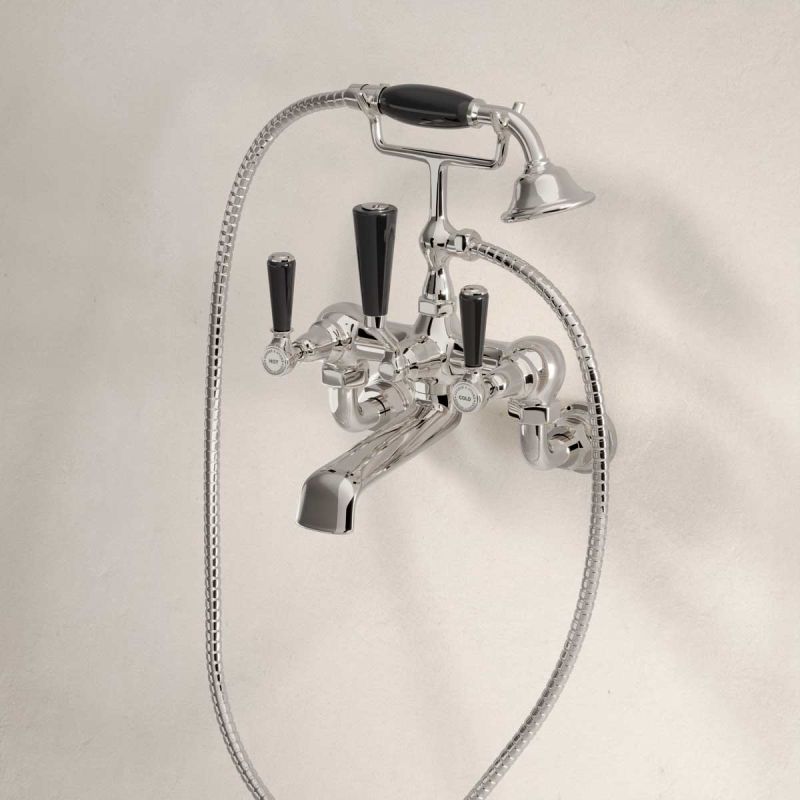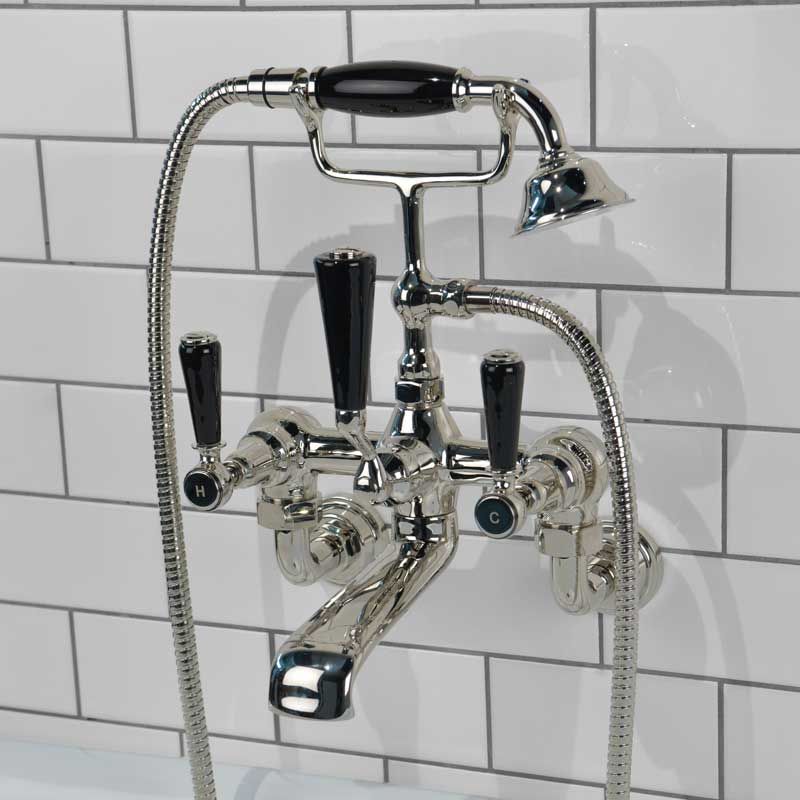 Our own, exclusive design, bath-shower mixer tap is shaped in traditional period style. The black lever taps have German engineered ceramic cartridges with hot and cold indicators. And the shower handle is made from coordinating ceramic.