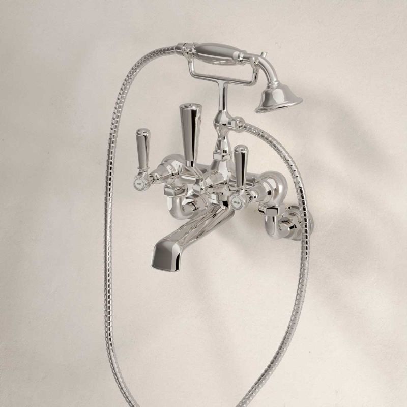 Our own, exclusive design, bath-shower mixer tap is shaped in traditional period style. The Metal Lever taps have German engineered ceramic cartridges with hot and cold indicators. And the shower handle is made from coordinating ceramic.