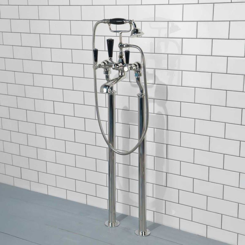 Our own, exclusively designed, freestanding bath shower mixer tap on standpipes. The ceramic lever taps have German engineered ceramic cartridges with metal hot and cold indicators. The standpipes are 620mm in length and cannot be cut down, if a lower height is required we also have a 620mm length available.