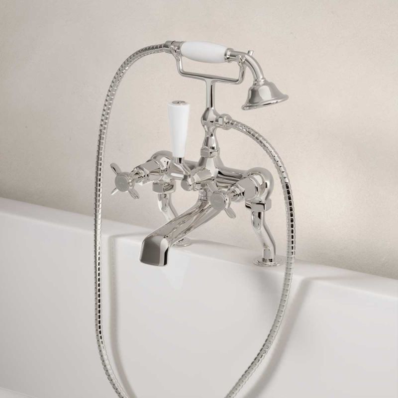 Our own, exclusive design, bath-shower mixer tap is shaped in traditional period style. The cross head taps have German engineered ceramic cartridges with hot and cold indicators. And the shower handle is made from coordinating ceramic. Perfectly matches our Calder range of showers.