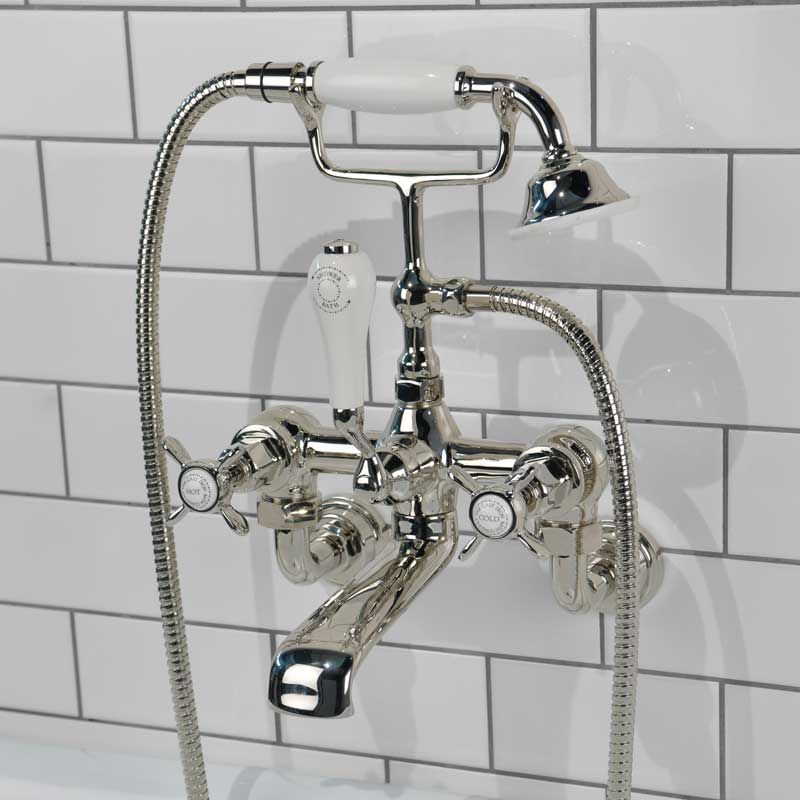 Our own, exclusive design, bath-shower mixer tap is shaped in traditional period style. The cross head taps have German engineered ceramic cartridges with hot and cold indicators. And the shower handle is made from coordinating ceramic.