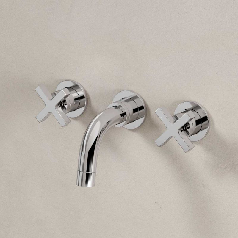 Bayor Backsplash Basin Mounted 3 Hole Basin - Crosshead - Chrome