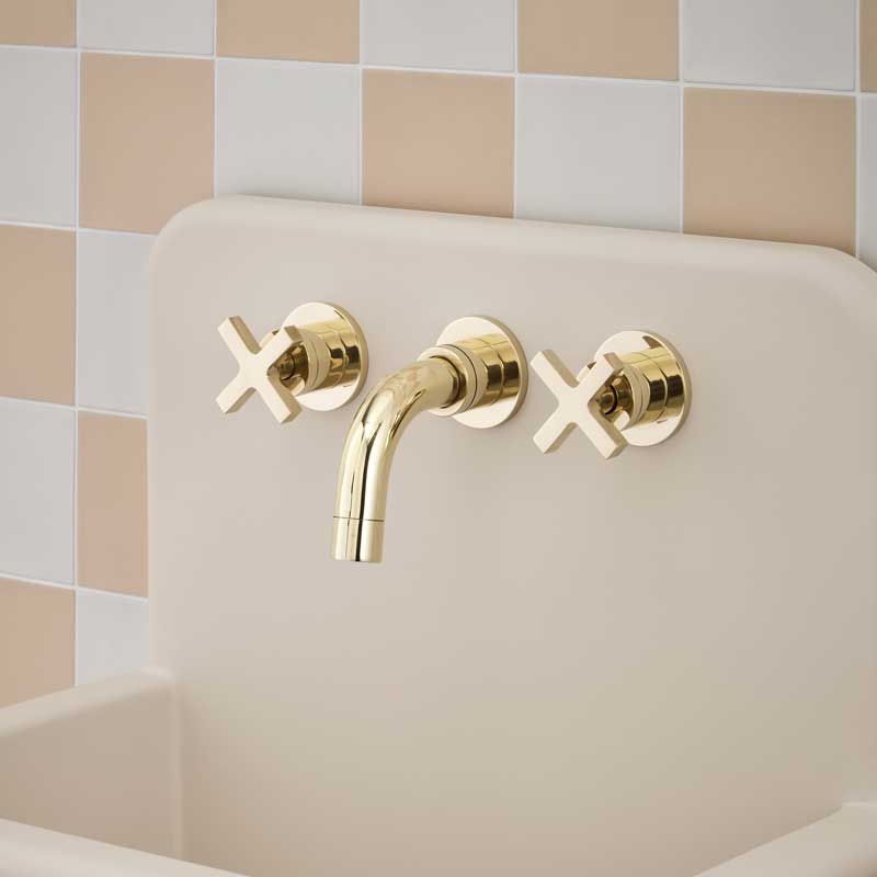 Bayor Backsplash Basin Mounted 3 Hole Basin - Crosshead - Living Brass