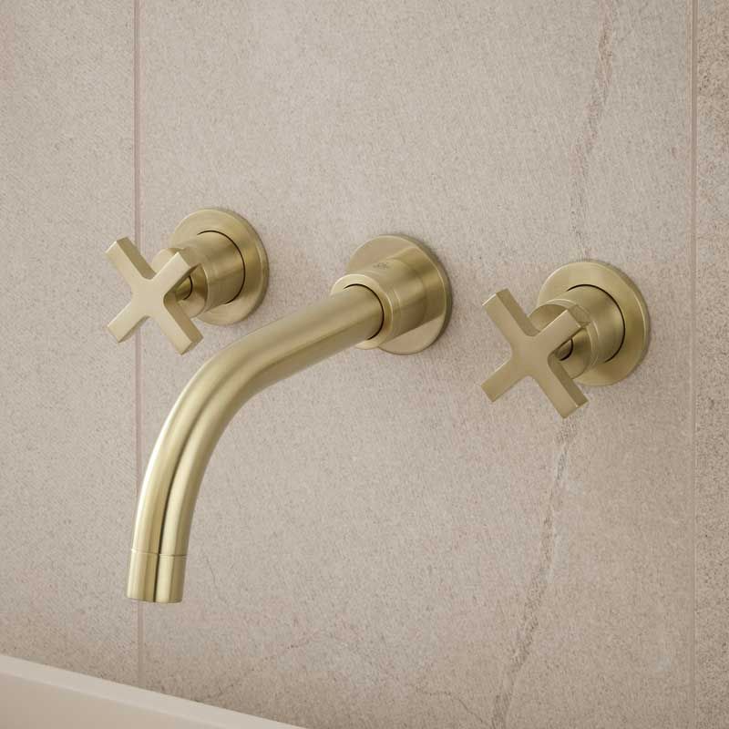 Bayor - 3-Hole Basin Mixer - Wall Mounted - Crosshead - Brushed Brass