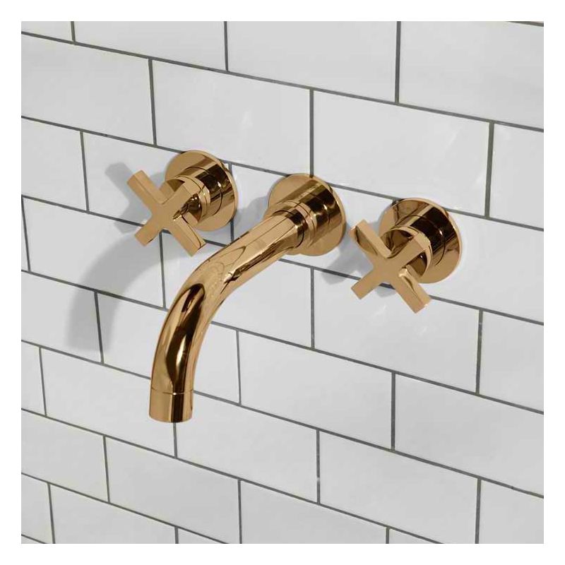 Bayor Wall Mounted 3 Hole Bath Filler - 220mm Spout - Crosshead - Living Brass