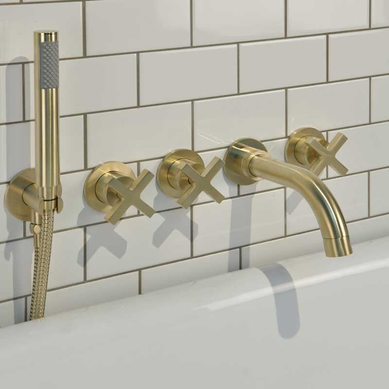 Bayor 5-Hole - Wall Mounted - Bath Shower Mixer - X Top - Brushed Brass
