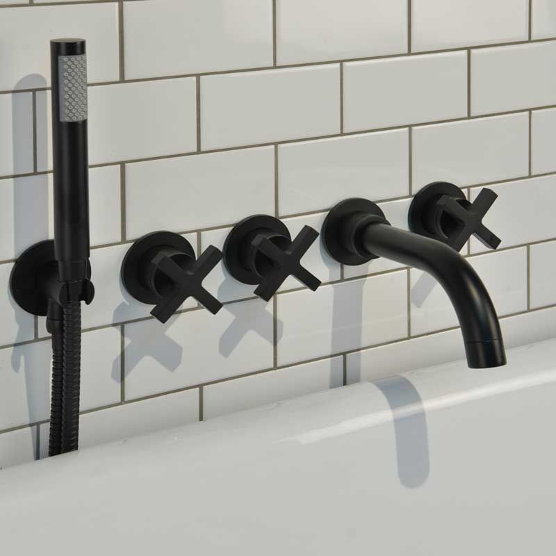 Bayor Wall Mounted 5 Hole Bath Shower Mixer - Crosshead - Matt Black