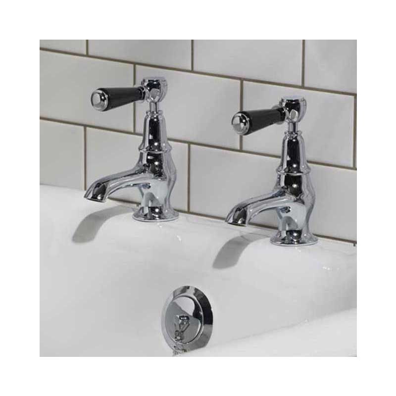 Designed and engineered by our team of specialists, these bath taps are made to the highest possible specification. The taps are available in nickel and Chrome. Each pair of taps is styled with a black lever and German engineered ceramic cartridges with hot and cold indicators.