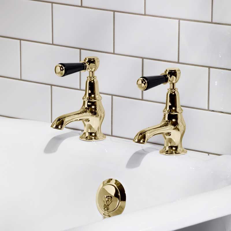 Linton Black Lever 3/4 BSP Bath Pillar Taps Timeless Brass