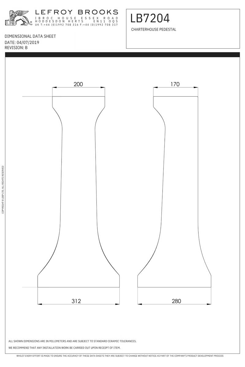 Lefroy Brooks Charterhouse 62cm Basin & Pedestal - LB7204 & LB7201/2/3