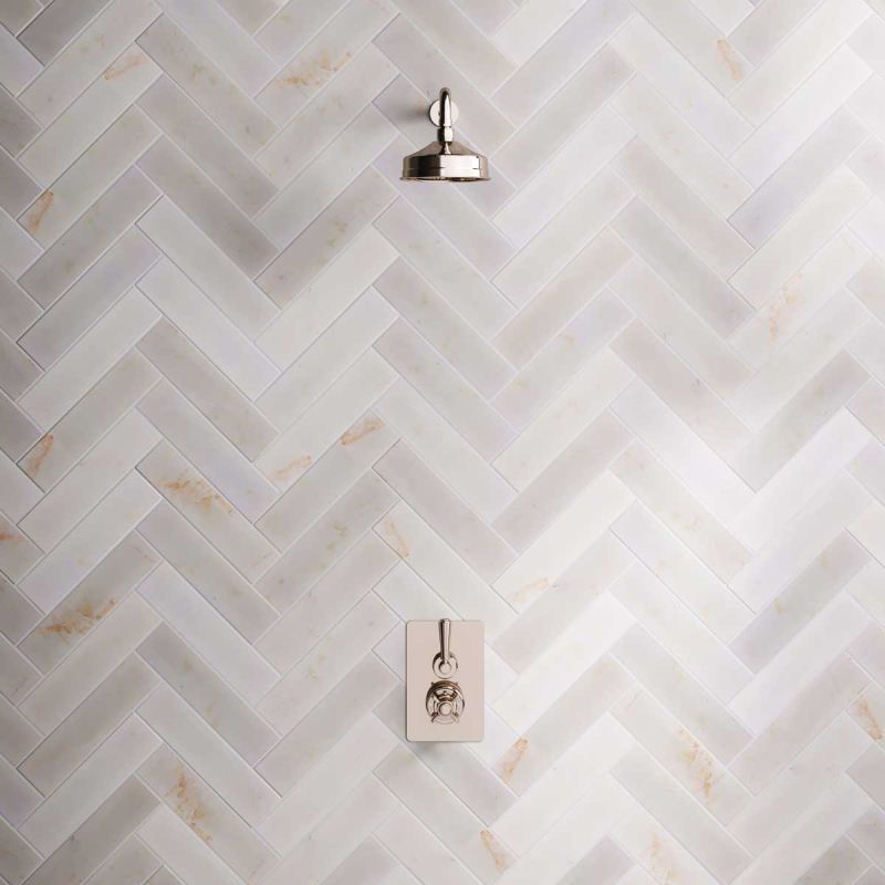 Inspired by Edwardian period showerware, Ashbee and Stone offer this beautifully finished concealed shower set. The valve, machined from solid brass, is fitted with a German engineered ceramic thermostatic cartridge, metal indicator bezel, cross head temperature controller, porcelain operation lever and is faced with brass cover plate. The shower set is completed with shower arm and 8 inch apron rainfall shower rose. Matches perfectly with our Asygarth and Linton ranges of taps.