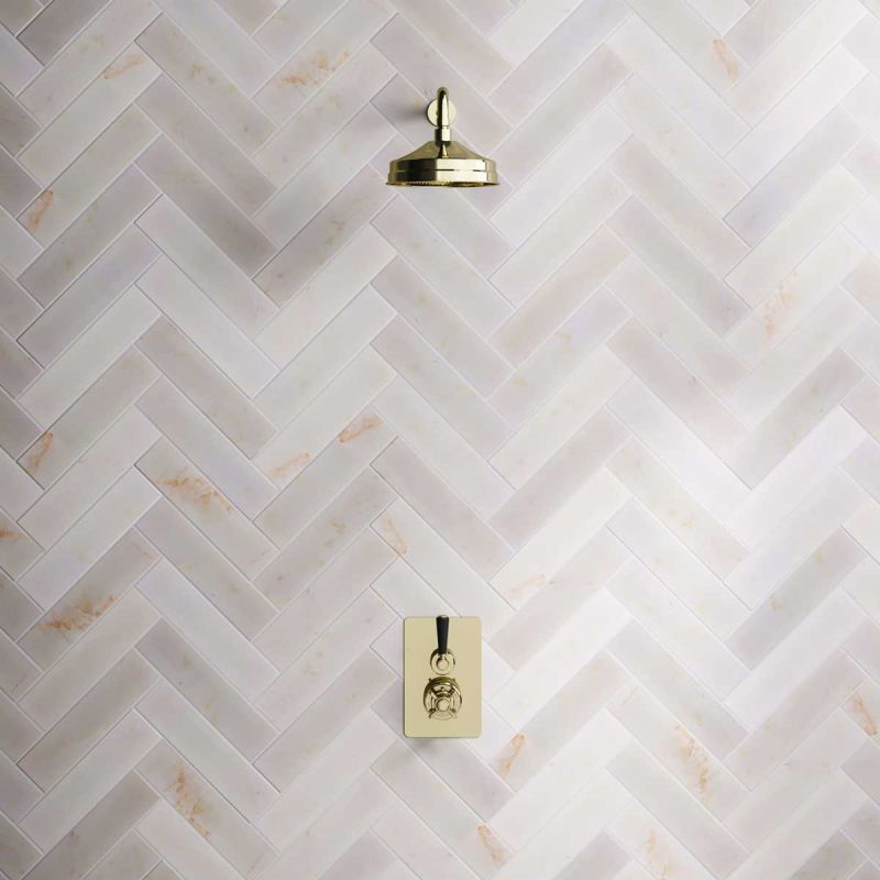 Calder Concealed Shower Valve, 500mm Shower Arm and 8 inch Rose Timeless Brass Black Lever