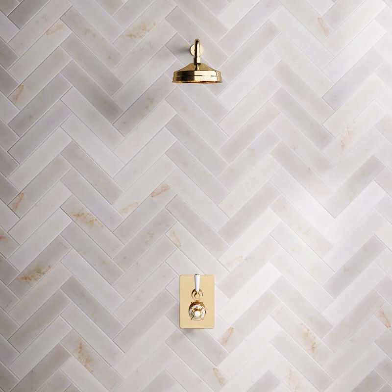 The Ashbee and Stone Concealed Shower Valve, Shower Arm and 8" Rose White Lever.