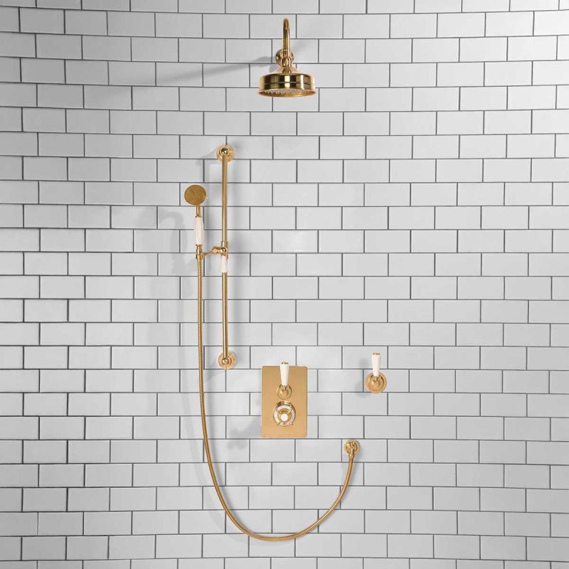 Calder Concealed Shower Valve Kit With Diverter And 6 inch Rose - 500mm Shower Arm - White Lever Polished Brass (Min 2 Bar Pressure)