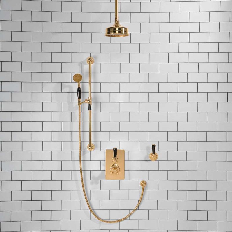 Calder Concealed Shower Valve Kit With Diverter And 6 inch Ceiling Mounted Rose Black Lever Polished Brass (Min 2 Bar Pressure)