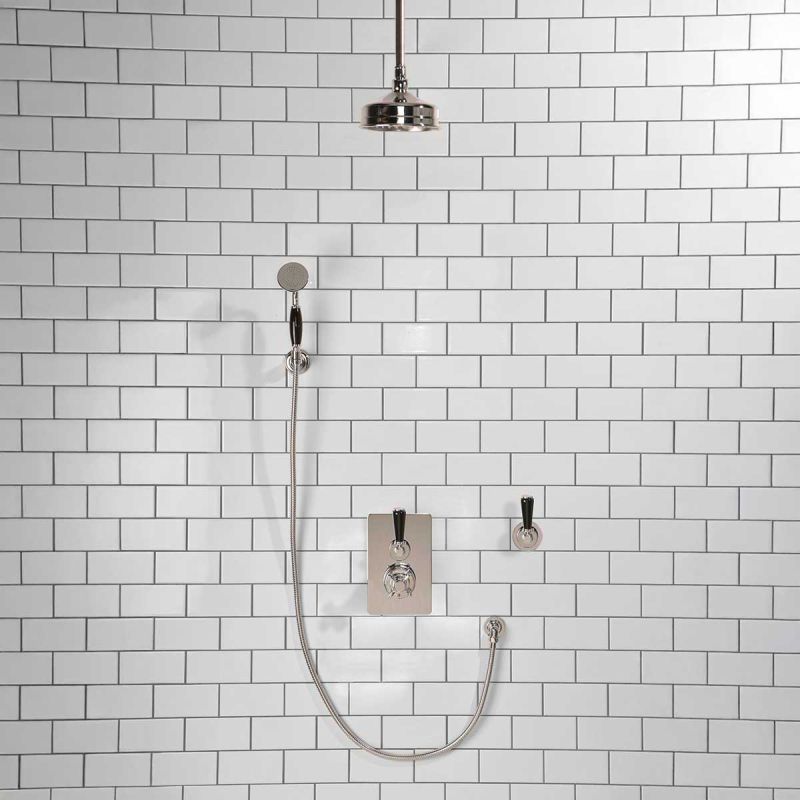 Calder Concealed Shower Valve Kit 6 inch Ceiling Mounted Rose with Diverter and Hook Mount Black Lever Chrome Plated (Min 2 Bar Pressure)