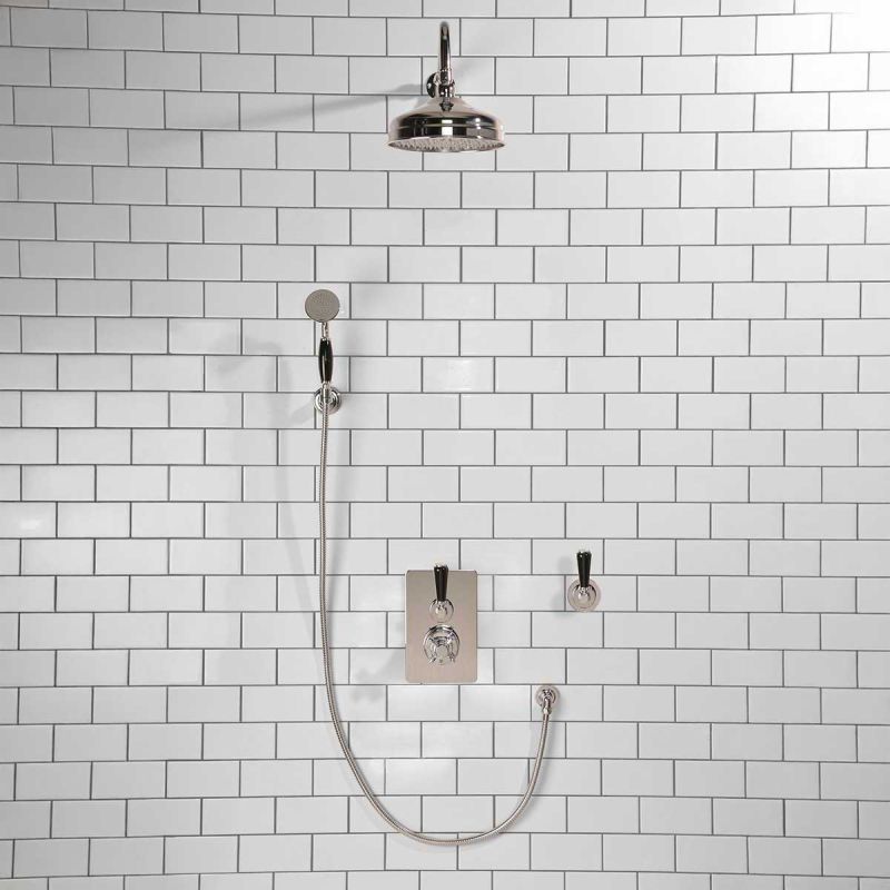 Inspired by Edwardian period showerware, Ashbee and Stone offer this beautifully finished exposed shower set. The valve, machined from solid brass, is fitted with a German engineered ceramic thermostatic cartridge, porcelain indicator bezel, cross head temperature controller and porcelain operation lever. Matches perfectly with our Asygarth and Linton ranges of taps.