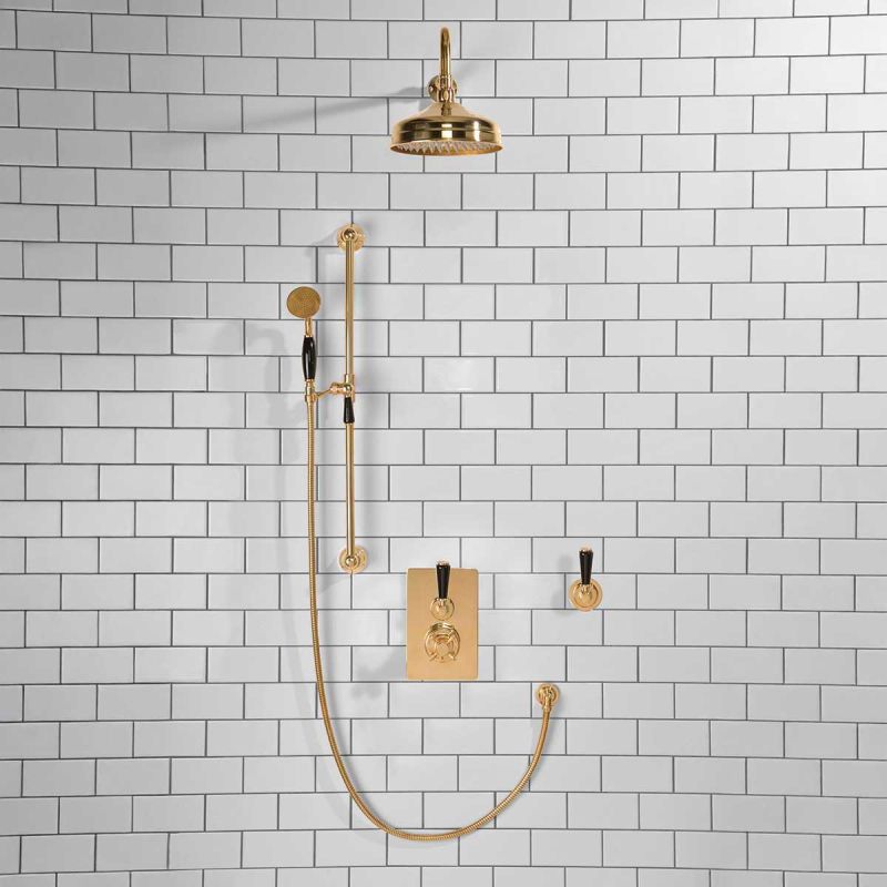 Calder Concealed Shower Valve Kit 8 inch Rose With Diverter Black Lever Polished Brass (Min 2 Bar Pressure)