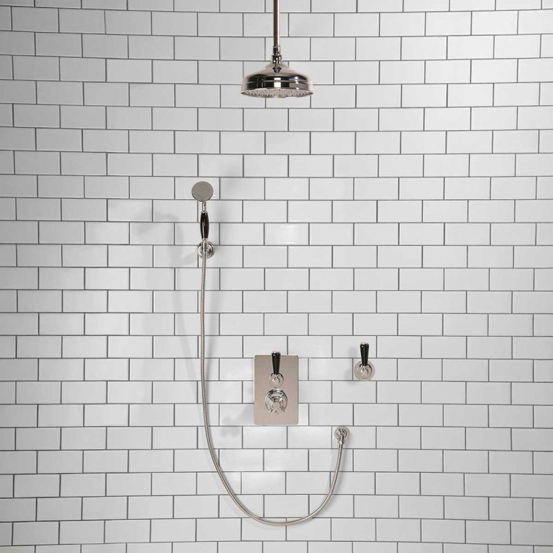 Calder Concealed Shower Valve Kit 8 inch Ceiling Mounted Rose with Diverter and Hook Mount Black Lever Chrome Plated (Min 2 Bar Pressure)