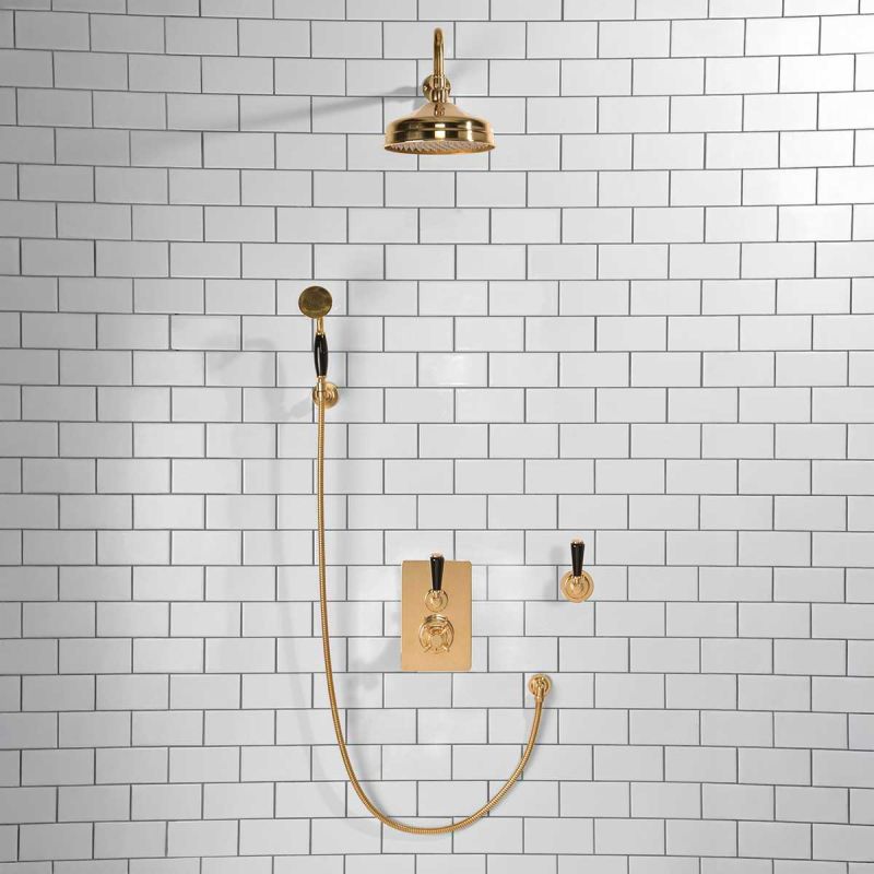 Calder Concealed Shower Valve Kit 8 inch Rose with Diverter and Hook Mount Black Lever Polished Brass (Min 2 Bar Pressure)