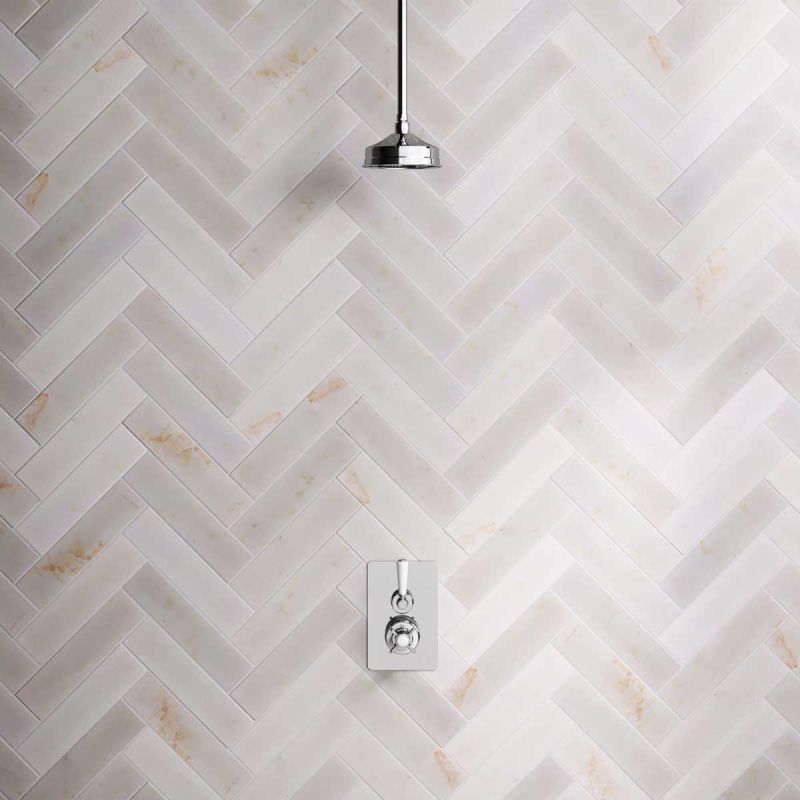 The Ashbee and Stone Concealed Shower Valve, Shower Arm and 6" Rose White Lever White Lever.
