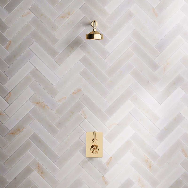 The Ashbee and Stone Concealed Shower Valve, Shower Arm and 6" Rose Metal Lever.