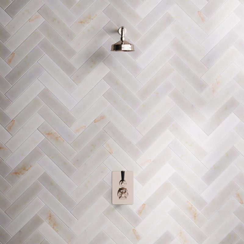 Inspired by Edwardian period showerware, Ashbee and Stone offer this beautifully finished concealed shower set. The valve. Machined from solid brass, is fitted with a German engineered ceramic thermostatic cartridge, metal indicator bezel, cross head temperature controller, porcelain operation lever and is faced with brass cover plate. The shower set is completed with shower arm and 8 inch apron shower rose. Matches perfectly with our Asygarth and Linton ranges of taps.