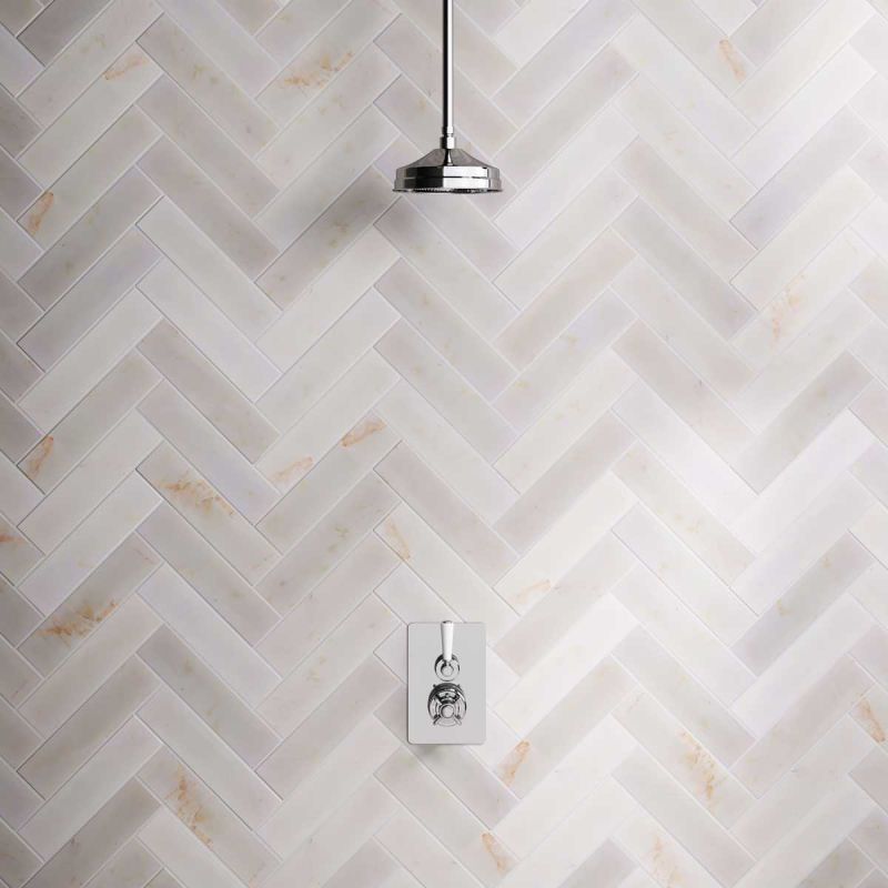 Linton Single Outlet Concealed Shower with 210mm Ceiling Arm & 8" Rose - White Lever - Chrome