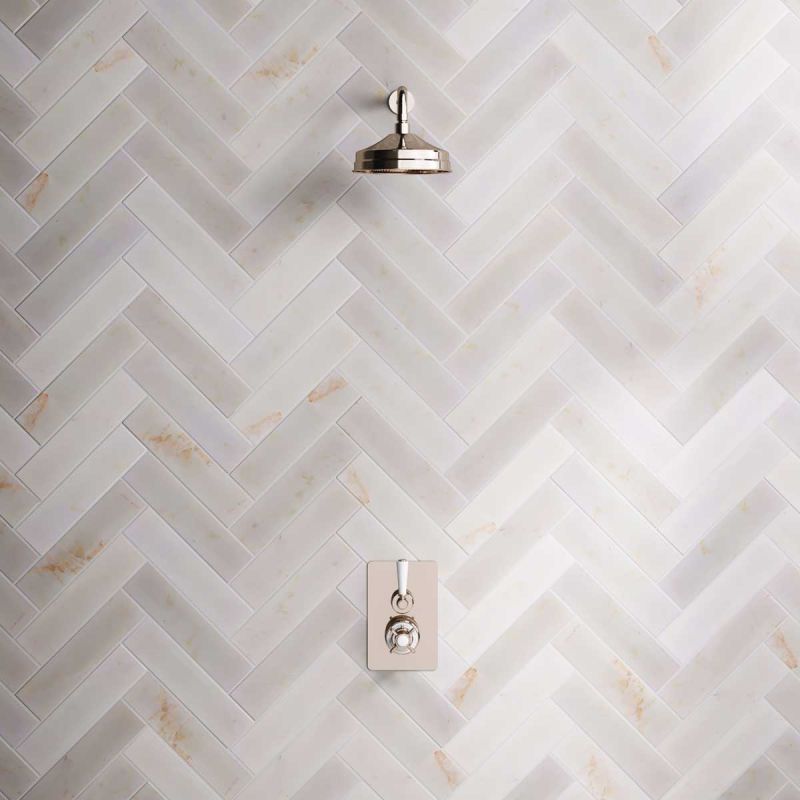 The Ashbee and Stone Concealed Shower Valve, Shower Arm and 8" Rose White Lever.