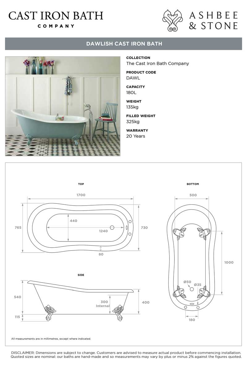 All of our cast iron baths are supplied with a 20 Year Guarantee.