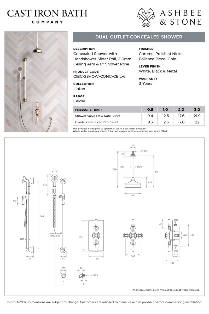 View Handshower on Slider Rail, 500mm Wall Arm & 6 Inch Rose specification sheet