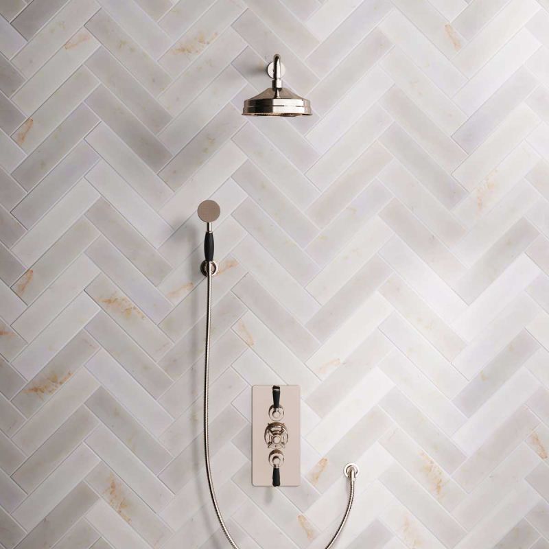 Inspired by Edwardian period showerware, Ashbee and Stone offer this beautifully finished concealed dual outlet shower set in Polished Nickel.