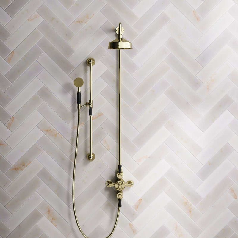 Inspired by Edwardian period showerware, Ashbee and Stone offer this beautifully finished exposed dual outlet shower set in Gold.