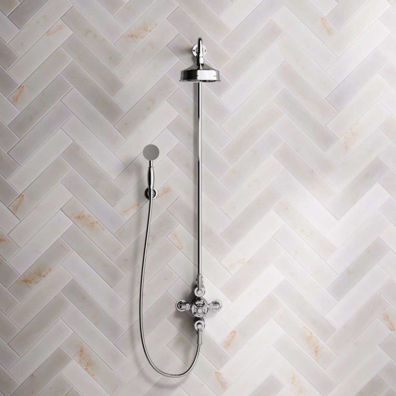 Inspired by Edwardian period showerware, Ashbee and Stone offer this beautifully finished exposed dual outlet shower set in Chrome Finish.