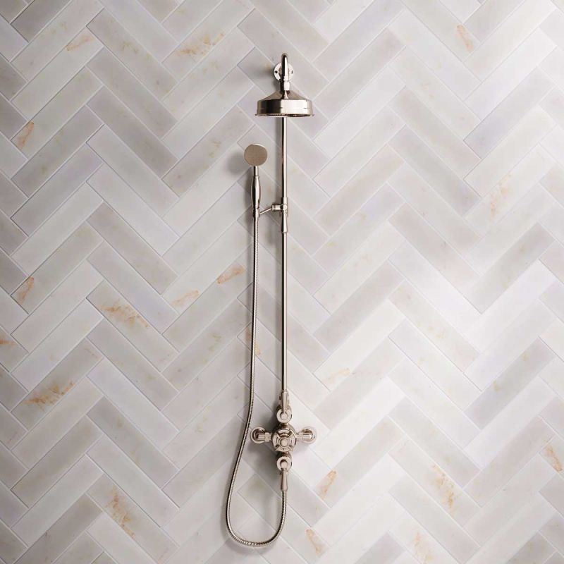 Inspired by Edwardian period showerware, Ashbee and Stone offer this beautifully finished exposed dual outlet shower set in Polished Nickel.