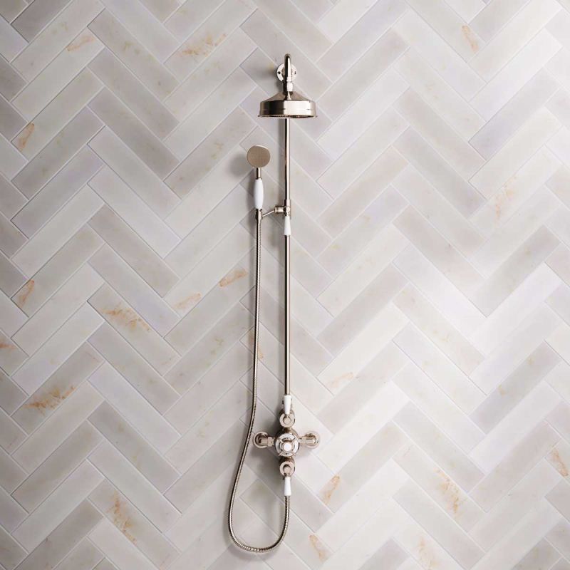 Inspired by Edwardian period showerware, Ashbee and Stone offer this beautifully finished exposed dual outlet shower set in Polished Nickel.
